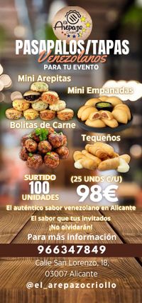 Nuestros pasapalos venezolanos son la opción perfecta para sorprender a tus invitados. Preparados al momento, con ingredientes frescos y ese sabor casero que nos distingue en Alicante.